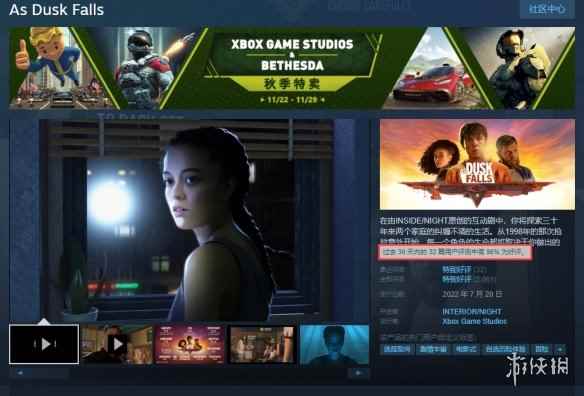 - Steam“特别好评”游戏《黄昏降临时》开启史低优惠