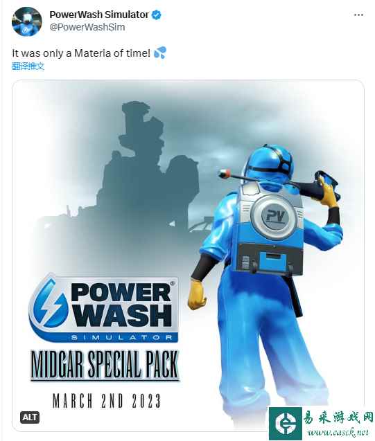 高压水枪清洁模拟游戏《冲就完事模拟器》官推宣布,与《最终幻想7》联动的DLC"米德加尔特...