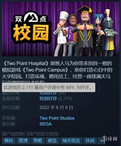 《双点校园》已于8月9日正式发售,游戏发售以后获得了好评,知名游戏媒体IGN给了这款游戏8分...