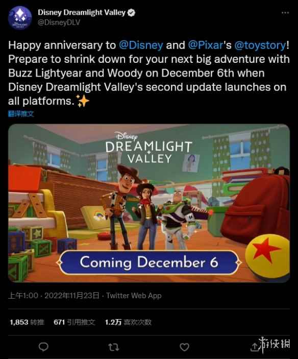 - 《迪士尼梦幻星谷》将于12月6日推出玩具总动员更新