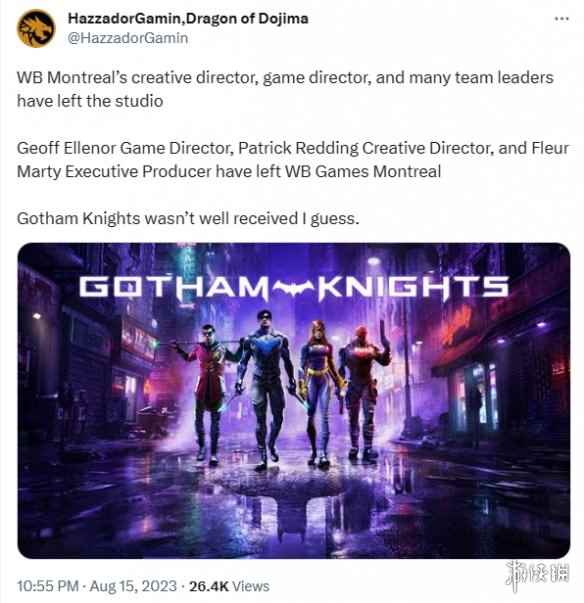 推主HazzadorGamin爆料,《哥谭骑士》的开发商WB Montreal人员流失惨重,几位核心成员已经离...