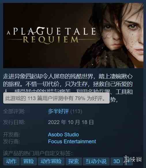 由Asobo Studio开发的《瘟疫传说:安魂曲》已于今日(10月18日)正式登陆Steam平台,该游戏目前...