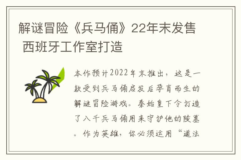 - 动作冒险游戏《兵马俑》确定10月20日发售