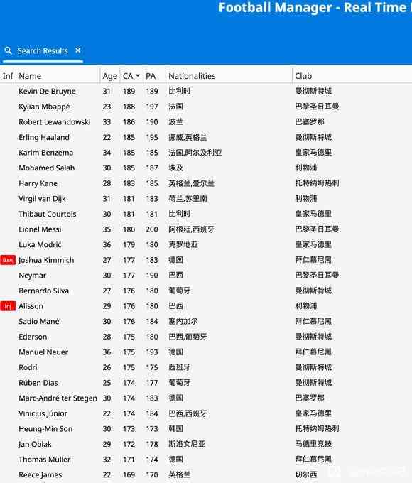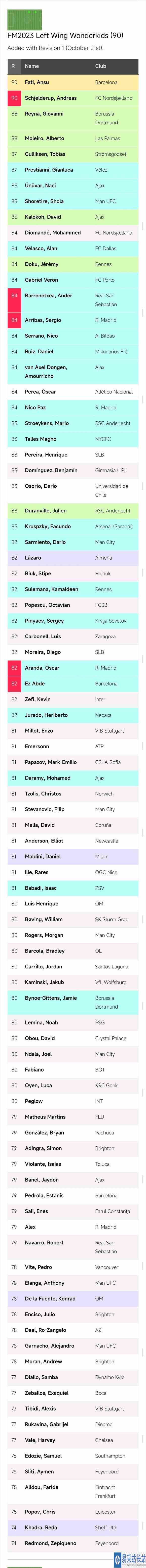 - 足球经理2023潜力球员排行 高潜力球员推荐
