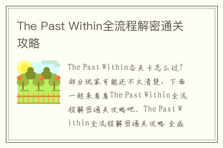 The Past Within各个成就怎么达成?部分玩家可能还不太清楚,下面一起来看看The Past Within全...