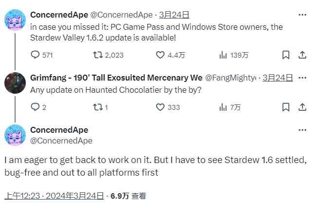 - 《星露谷物语》1.6更新上线后 开发者将恢复《恐怖巧克力工厂》开发
