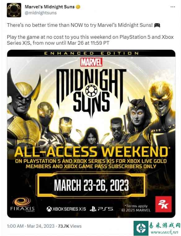 - 《漫威暗夜之子》推特活动 有机会赢取“黄金版”PS5