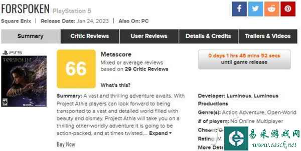 在昨天晚些时间,SQUARE ENIX的最新作品《魔咒之地(Forspoken)》的Metacritic评分解禁,此次评分目...