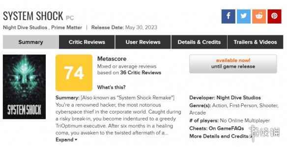 - 科幻FPS游戏《网络奇兵:重制版》评分解禁:M站74分!
