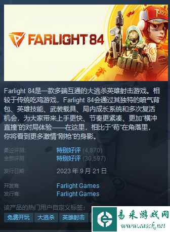 落日余晖的英文名称为Farlight 84,在steam商店中输入本作英文名称才能搜索到游戏相关页面,感兴...