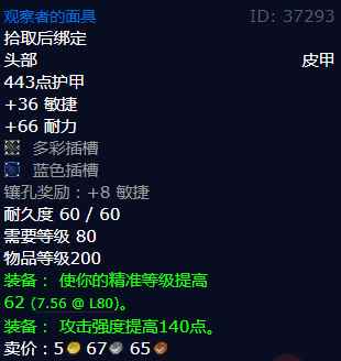 魔兽世界观察者的兜帽属性,拾取后绑定,唯一,头部布甲,127点护甲,+21耐力,+36智力,+14精神,耐久度50/5...