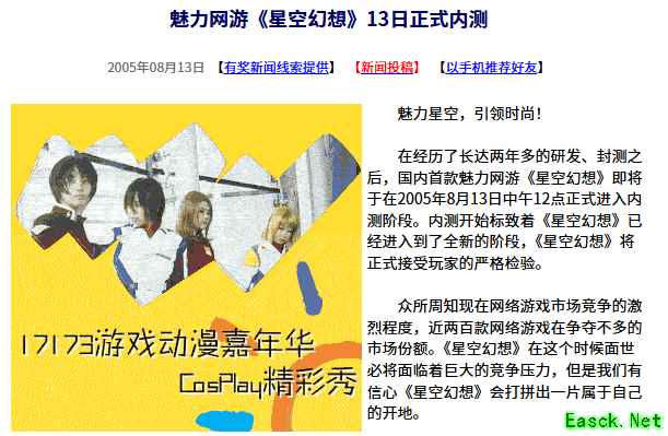 - 20年前的今天:魅力网游《星空幻想》正式内测