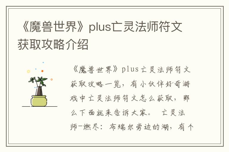 - 《魔兽世界》plus亡灵法师符文获取攻略介绍