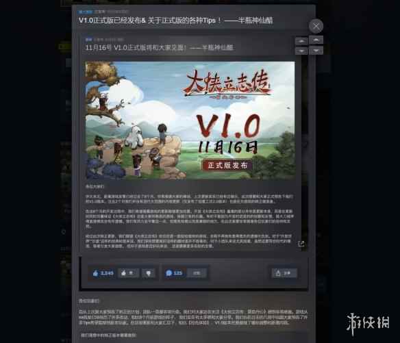 《大侠立志传:碧血丹心》官方宣布全球销量突破100万份,其中PC端贡献了大约7成,“伙伴结义玩法”...