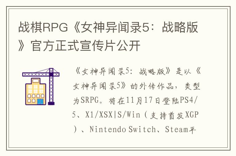 《女神异闻录5:战略版》是以《女神异闻录5》的外传作品,类型为SRPG。将在11月17日登陆PS4/5、X...