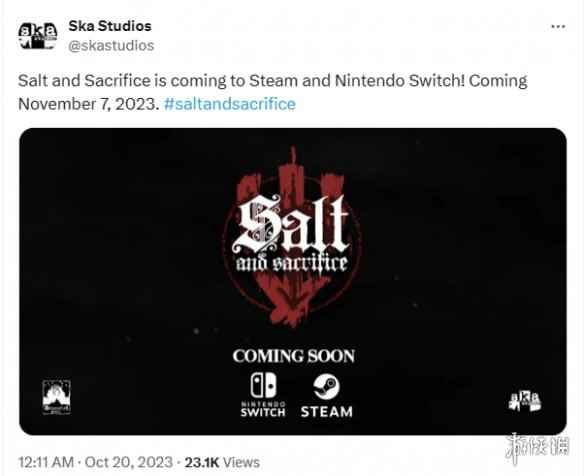开发商Ska Studios今日宣布2D类魂游戏《盐与避难所》续作《盐与献祭》将于2023年11月7日...