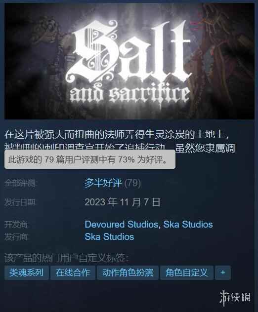 - 《盐与献祭》通过Deck掌机验证!11月7日登Steam