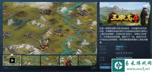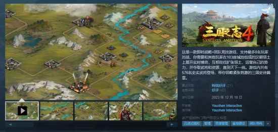 - 战略竞技游戏《三国之志4》STEAM特别好评中