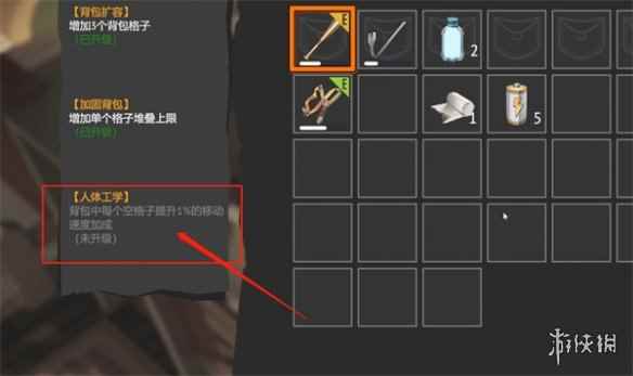 苏醒之路的背包里可以解锁很多功能,人体工学就是一个非常实用的功能,不过在探险的时候就有点坑...