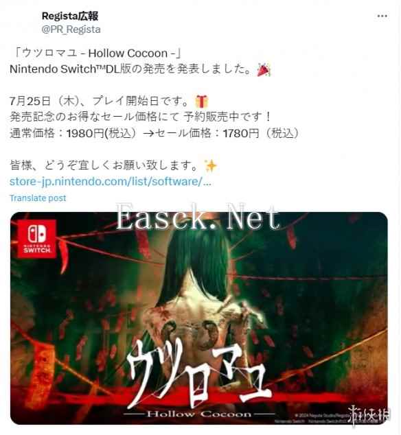 近日,发行商Regista宣布恐怖冒险游戏《茧中蚕(Hollow Cocoon)》将于7月25日登陆Switch平台...