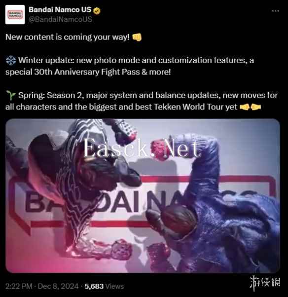 万代南梦宫的格斗游戏巨作《铁拳8》(Tekken 8) 即将迎来重磅更新! 官方发布了冬季更新及...