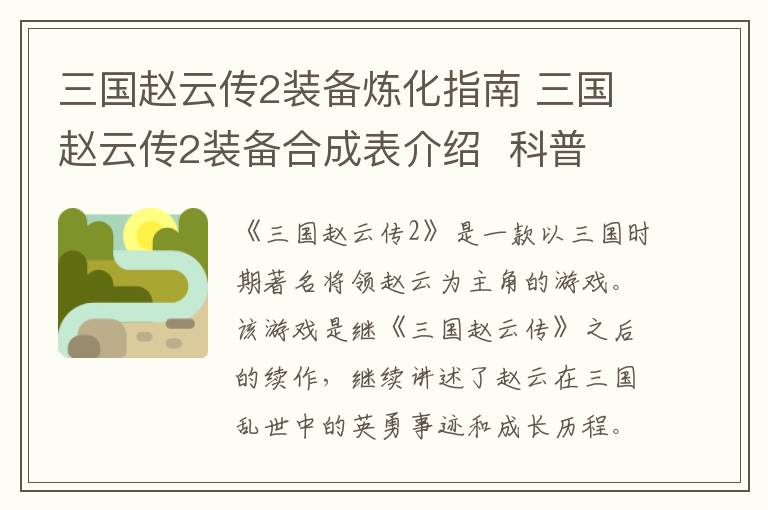 - 三国赵云传2装备炼化指南 三国赵云传2装备合成表介绍 科普
