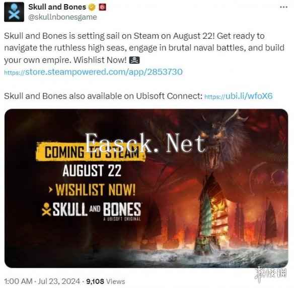 - 育碧海盗RPG游戏《碧海黑帆》官宣8月22日登陆Steam