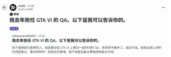 近日,一名自称曾参与GTA6开发的前R星质量测试人员在Reddit论坛上分享了自己的经历。该玩家的...