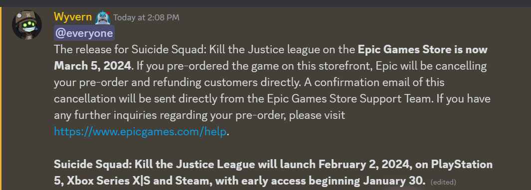 - 《自杀小队:战胜正义联盟》Epic平台延期发布 其他平台按计划推出