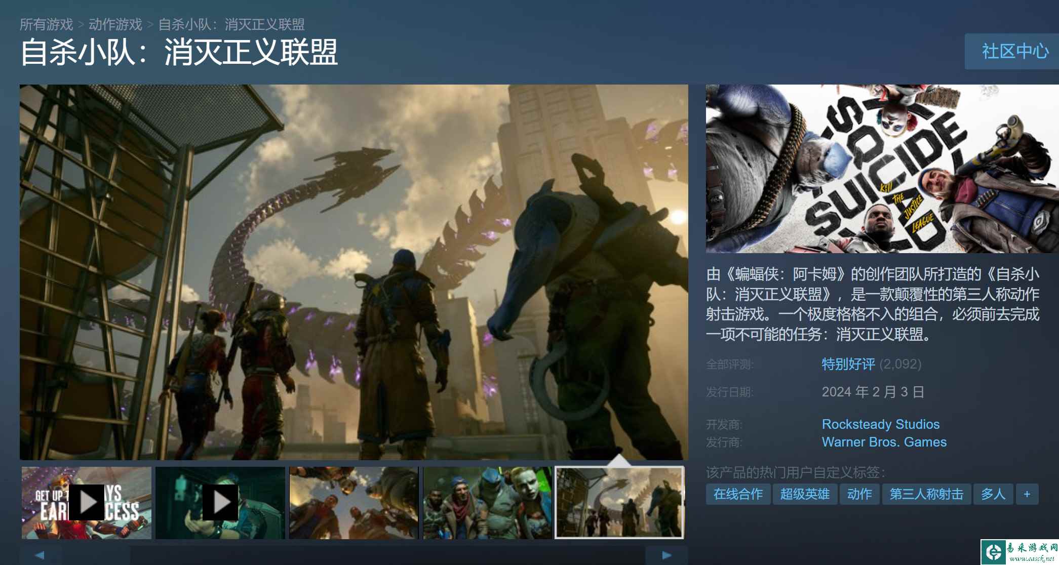 - 《自杀小队:战胜正义联盟》在Steam获特别好评 游戏剧情方面不尽如人意