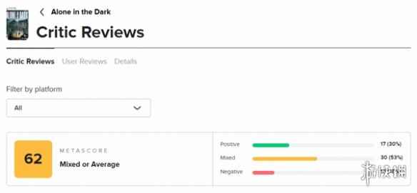 今日,《鬼屋魔影重制版(Alone in the Dark)》媒体评分正式解禁,M站均分62分,其中17家媒体给出...