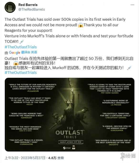 - 《逃生:试炼》抢先体验版发售首周销量超50万份!