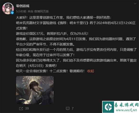 - 《饿殍:明末千里行》官宣4月23日发售 首发特惠29元
