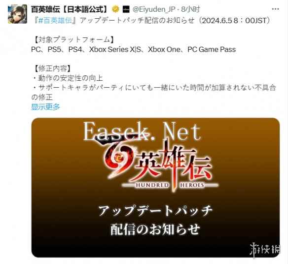 - 《百英雄传》新更新补丁:本地化问题修复 稳定性改进
