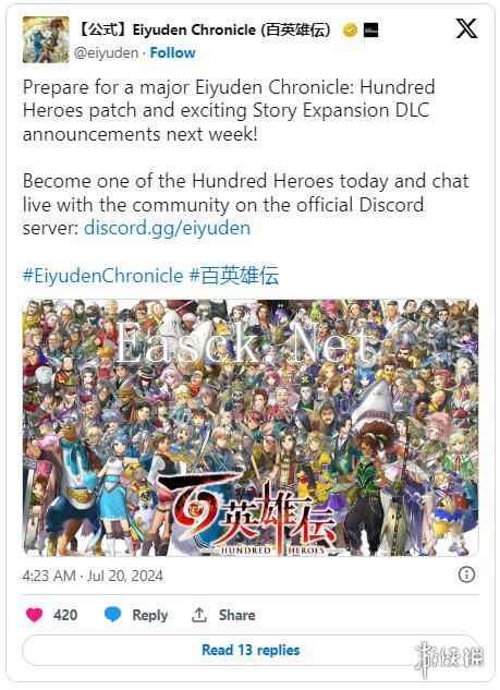 - 《百英雄传》大型更新下周发布!还将会公布剧情DLC
