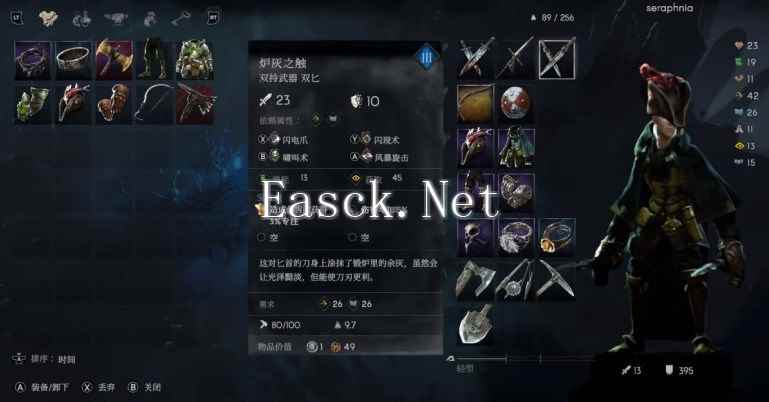 恶意不息中有一把名为炉灰之触的双持匕首,对于刺客职业来说相当好用,完全可以用这把武器作为核...