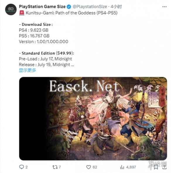 - 游戏博主爆料《祇:女神之道》PS4/PS5版容量公开 将在7月17日下载