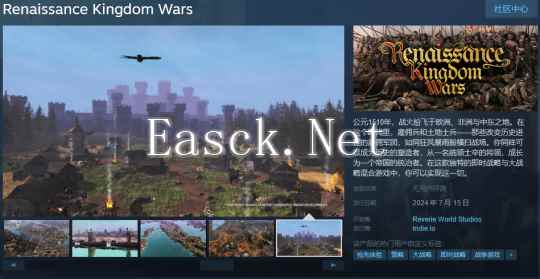 今日(6月27日),即时战略与大战略混合游戏《文艺复兴王国战争》宣布7月15日EA发售,游戏支持简体中...