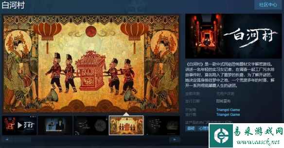- 国产心理恐怖《白河村》Steam多半好评 售价38.25元