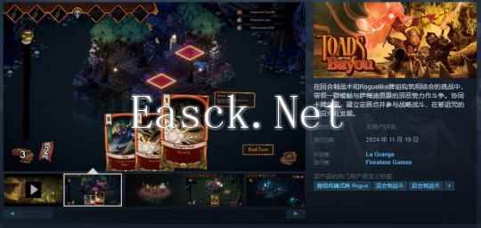 由La Grange进行开发、Fireshine Games负责发行的战术回合制肉鸽牌组游戏《长沼蟾蜍(Toads of the Bayou)》,现已在Steam平台正式推出并获得多半好评。 在折扣回