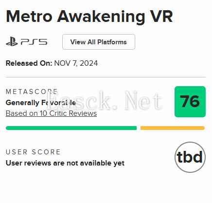 - 《地铁:觉醒》M站均分76分:身临其境感超强!