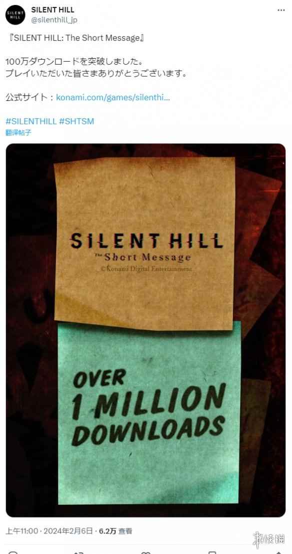 - 《寂静岭:短讯》销量突破四百万 官方发文庆祝!