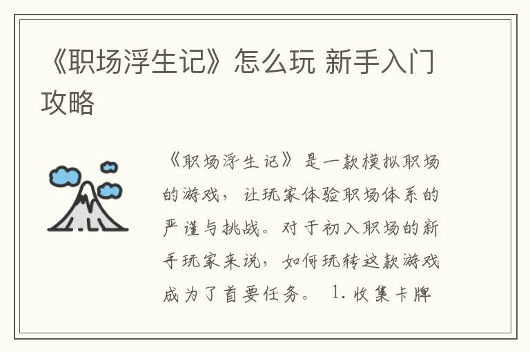 - 职场浮生记初期用什么卡 初期卡牌推荐