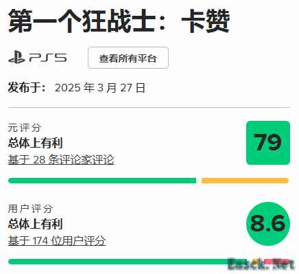 - 《第一狂战士:卡赞》上线玩家评分公开