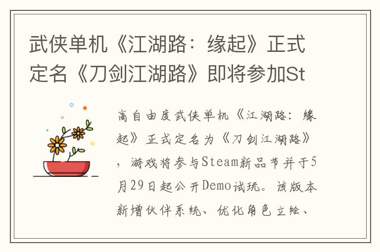 - 武侠单机《江湖路:缘起》正式定名《刀剑江湖路》即将参加Steam新品节