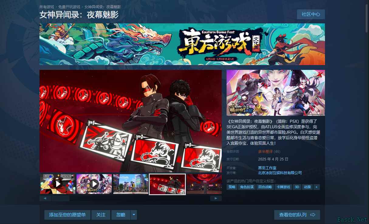 - 《女神异闻录:夜幕魅影》Steam版将于4月25日发售
