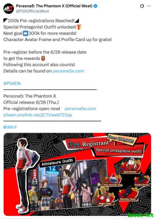 - 《女神异闻录:夜幕魅影》国际服预约破20万 官方送礼