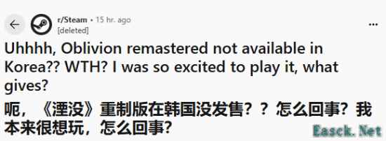 - 《上古卷轴4:湮灭重制版》未在韩国推出引发玩家热议