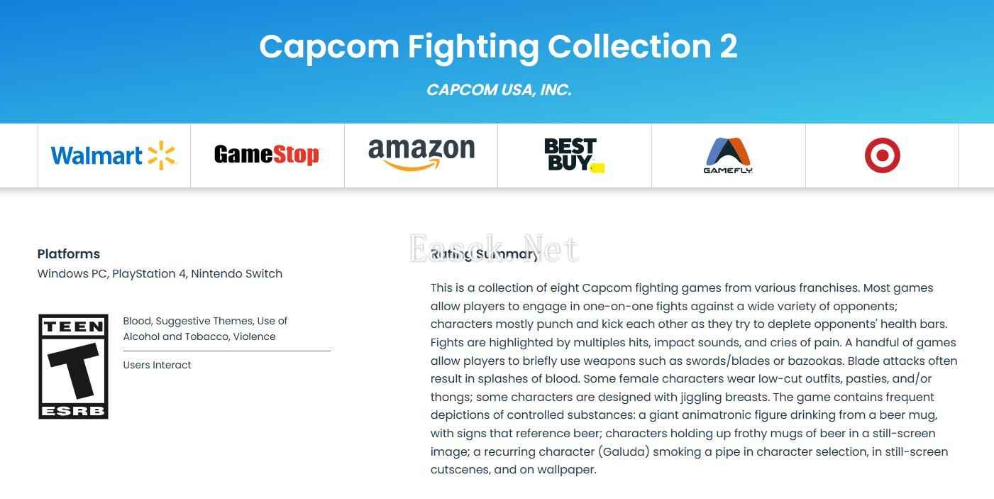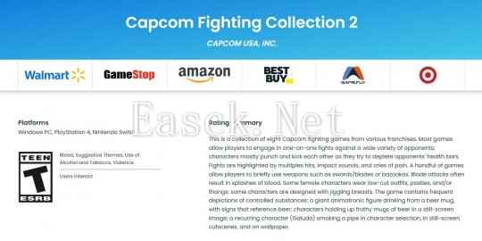 此前,卡普空已经宣布《卡普空对战格斗合集 2》将于 2025 年发售。如今,根据 ESRB 官网显示,该作...