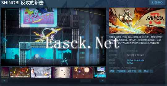 - 忍者动作游戏《SHINOBI 反攻的斩击》Steam页面上线 8月29日发售